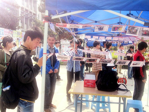 活动现场,校庆明信片以及展现各社团风采的上百张明信片悬挂在广场上展示,并同时进行义卖,在大艺团电声乐队的合作宣传下,南二广场人气高涨,同学们纷纷驻足回看校园发展、共读社团奋斗、齐赏校园美景,并写下祝福,寄出属于自己对母校的爱。