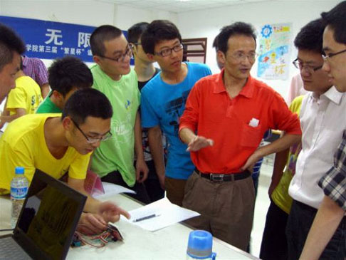 科协人扎实的技术功底,两件作品“无线遥控小车”和“俄罗斯方块游戏机”使得现场氛围异常活跃,技术领域的娱乐色彩吸引了大家的眼球。