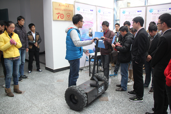 高翔老师指导、大三学子吕阳凯制作的《载人平衡车》的成功展示让观众惊叹不已;由JOJO漫画