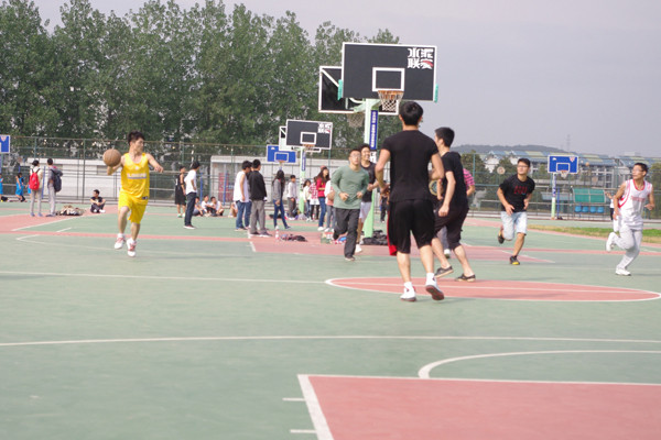 篮球赛随着一声哨响准时开始了,场边的啦啦队员们卖力的嘶吼着加油,场上的健儿们激情高涨:飞奔、传球、防守。飞出的篮球在天空中幻化成一条完美的曲线进入篮筐:进球了!场边响起一阵热烈的欢呼,但随即马上平静下来,因为球赛还在紧张的进行着。双方势均力敌、你追我赶、不分胜负,比赛进行的扣人心弦。但在比赛结束时,研二以微弱的比分弱势输给了研一,比赛至此落下帷幕。运动员们团结奋进的精神感动了在场的每一个人,他们用自己的激情与汗水传达着对运动,对生活的热爱。