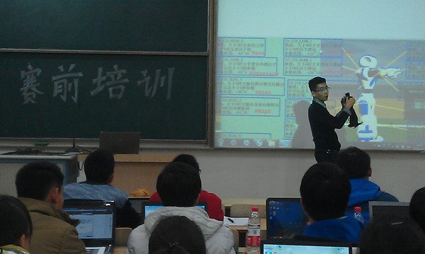 此次机器人造型设计大赛在大一大二学生中展开,鉴于学生掌握的知识有所区别,比赛内容有所不同。大一学生进行两次比赛,成绩加权求和得到,而大二学生只进行一次比赛。为了比赛的公平公正,比赛分为大一和大二两组进行。比赛场上,同学们个个绞尽脑汁,使出浑身解数。参赛队员为了得到更精确的答案,得到更加精简的代码,经常爆发激烈的讨论。大二选手熟练运用代码,调出一个个造型漂亮的机器人。而大一选手也毫不示弱,凭着自己对机器人的热情与创新,不少同学也调出了最终结果。