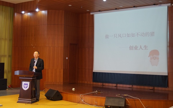讲坛现场气氛活跃,主讲人随和风趣,参与学生提问热情积极,现场不断爆发出热烈的掌声和笑声。主讲人顾晓峰先生以标题“做一只风口如不动的猪”开始了自己人生经历的讲述,其中穿插着顾先生对于创业,对于青春,对于人生的诸多想法,他鼓励当代大学生培养优良的品格习惯,打开思维,挖掘新项目去创业。对于同学们的提问也一一做了耐心的解答和建议,他还代表众多杰出校友表达了对母校的眷恋之情和对学弟学妹的殷切期待。