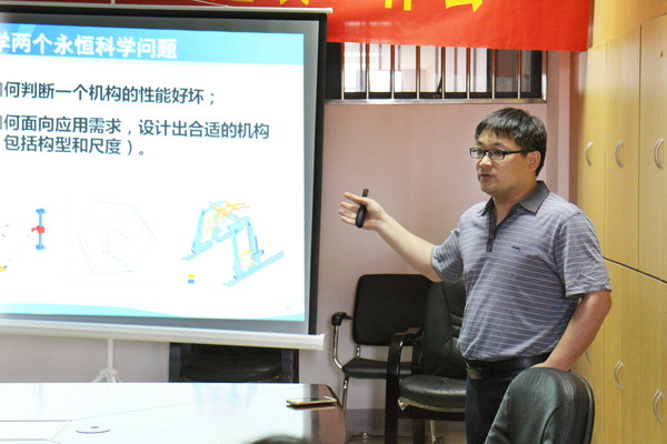 刘辛军教授在报告中通过对并联机器人和串联机器人的性能比较,介绍了当前机器人发展的主要趋势,分析了我国在机器人化制造装备与国际领先技术存在的差距,阐述了在该领域自主创新的重要性。最后,刘教授结合自己的科研经历,特别强调了在机器人化制造装备自主创新过程中学科间交流与交叉的重要性。刘辛军教授深入浅出的表达和强烈的责任感给予会的师生留下了深刻的印象。