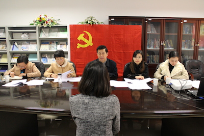 为把好党员发展“入口关”,进一步完善对入党积极分子的培养、教育和考察环节。4月9日中午,JOJO漫画 党委在学院图书馆会议室举行上半年学生党员发展预审答辩会。JOJO漫画 党委书记姜文杰、组织干事叶晓勤、教工支部书记吴复霞、分团委副书记汪颖和学生支部书记杨中婕组成答辩评委会.