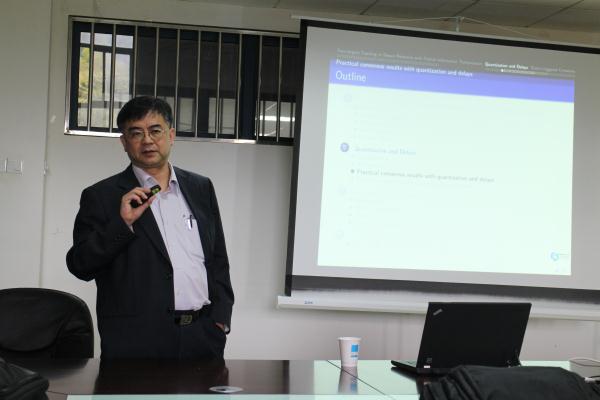 | 4月29日下午,香港城市大学数学系Daniel W. C. Ho教授应JOJO漫画 邀请来JOJO漫画 讲学,在仙林校区第五教学楼207会议室作题为“Distributed Networked System under Imperfect Communication Constraint”的学术报告。 Daniel W. C. Ho教授对现有分布式多智能体网络系统理论研究作了系统的报告,着重讲解了网络化控制的三个热点研究问题,即无线传感器网络的目标跟踪、基于量化通信和时延的分布式一致、基于事件触发机制的网络化控制。Daniel W. C. Ho教授指出了网络化控制的多个热点研究方向,并与大家分享了科研和论文写作的个人心得。 报告会结束时,与会教师、学生与Daniel W. C. Ho教授就相关热点问题进行了交流。 主讲嘉宾简介: Prof. Daniel W. C. Ho received BSc, MSc and PhD degrees in mathematics from the University of Salford (UK) in 1980, 1982 and 1986 respectively. From 1985 to 1988, he was a Research Fellow in Industrial Control Unit, University of Strathclyde (Glasgow, Scotland). In 1989, he joined the Department of Mathematics, City University of Hong Kong. Prof. Ho serves as Associate Editor for five international Control journals including Journal of Franklin Institute, IET Control Theory and its applications and Asian Journal of Control. He is recipient of “The Best paper award” from the 8th Asian Control Conference. In 2012, he is honored to be the Chang Jiang Chair Professor, Nanjing University of Science and Technology, awarded by Ministry of Education, China. Recently, he has been named in the list of Highly Cited Researchers 2014 published by Thomson Reuters. His general research interests are estimation and filtering theory, complex dynamical distributed networks, multi-agent networks, nonlinear singular systems and stochastic systems.