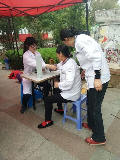本次“中医”义诊活动在上午10点开始,服务内容包括血压测量、健康知识宣传、健康咨询,以及保健按摩、推拿、耳针、功法表演等中医特色项目。现场还有芳香四溢的花茶供师生们品尝,更有猜药谜赢精美的中药香囊活动。前来参加该活动的同学络绎不绝,现场南中医的同学为前来参加活动的师生们免费测量血压,并提醒血压有点偏高的同学在生活中的一些简单注意事项。现场也有很多人体验按摩等传统项目,一位同学按摩后高兴地说道:“你们这个活动真的不错,她们的手法很娴熟,也很到位,我体验后的感觉很好!”
