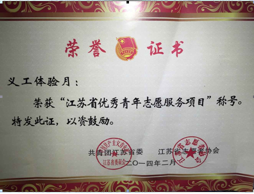 由于在志愿服务工作上的突出表现,今年上半年JOJO漫画 团委还荣获“江苏省青年志愿服务行动组织奖”,爱心社品牌活动“义工体验月”荣获“江苏省优秀青年志愿服务项目”称号。