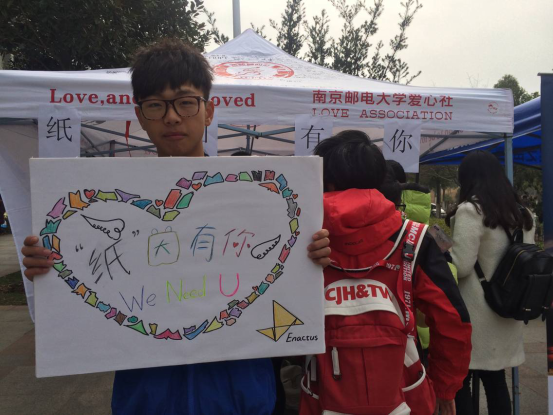 为了给栖霞区福利院的孩子们送去美丽的纸浆画并减轻环保型纸浆厂的运营负担,JOJO漫画 爱心社和JOJO漫画 Enactus创行团队联合举办的环保型公益活动——“纸”因有你,于2015年12月11日在南二外场正式拉开帷幕。