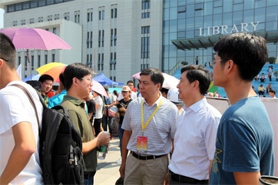 校党委书记刘陈、副校长王国平、王宗荣来到迎新现场询问新生报到情况并和志愿者们亲切交谈。院党委书记姜文杰、党委副书记杜月林现场指挥迎新工作。辅导员老师向满怀憧憬的新生表示欢迎,并与学生家长谈论亲切交流,让家长安心,放心。