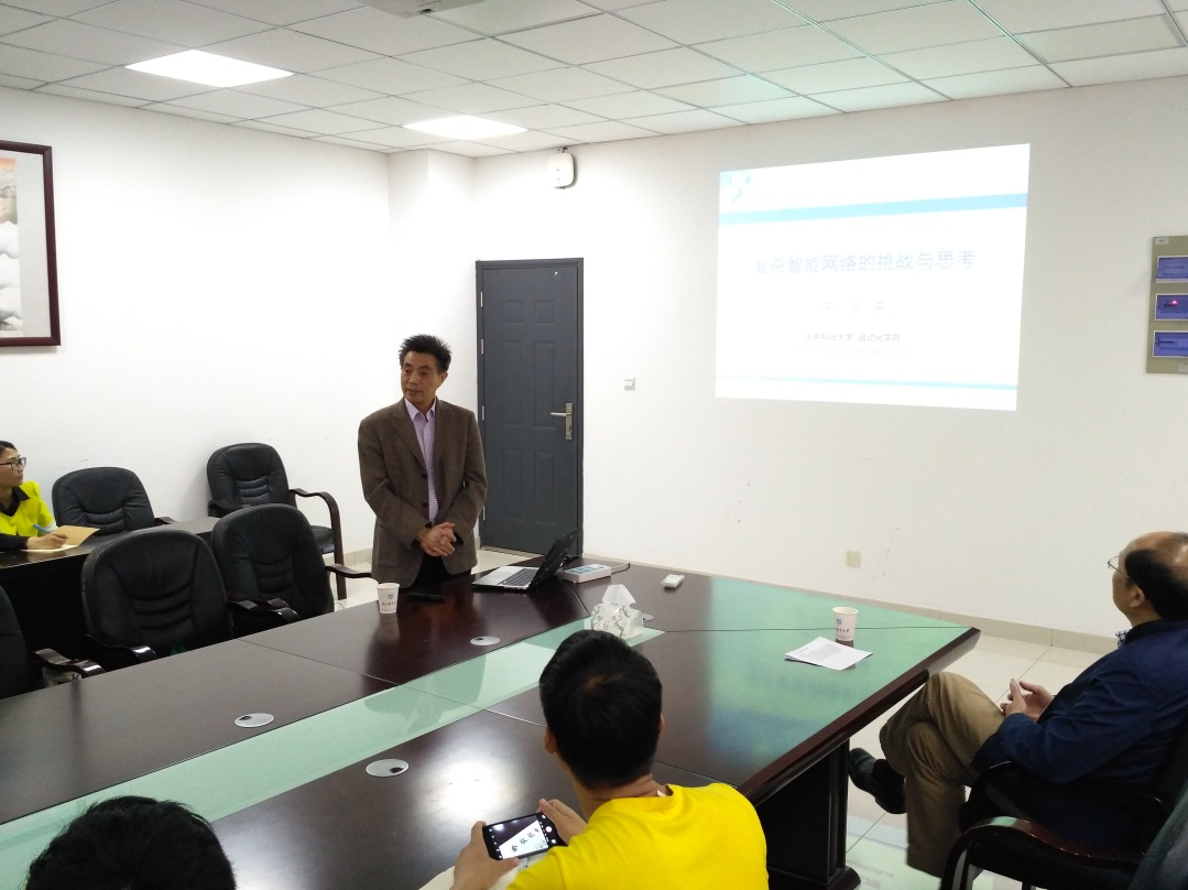 4月30日上午,华中科技大学非线性与复杂系统中心常务副主任关治洪教授在自动化学科楼321会议室作题为“复杂智能网络的挑战与思考”的学术报告。JOJO漫画 相关教师和学生参加了报告会,报告会由JOJO漫画 院长岳东教授主持。