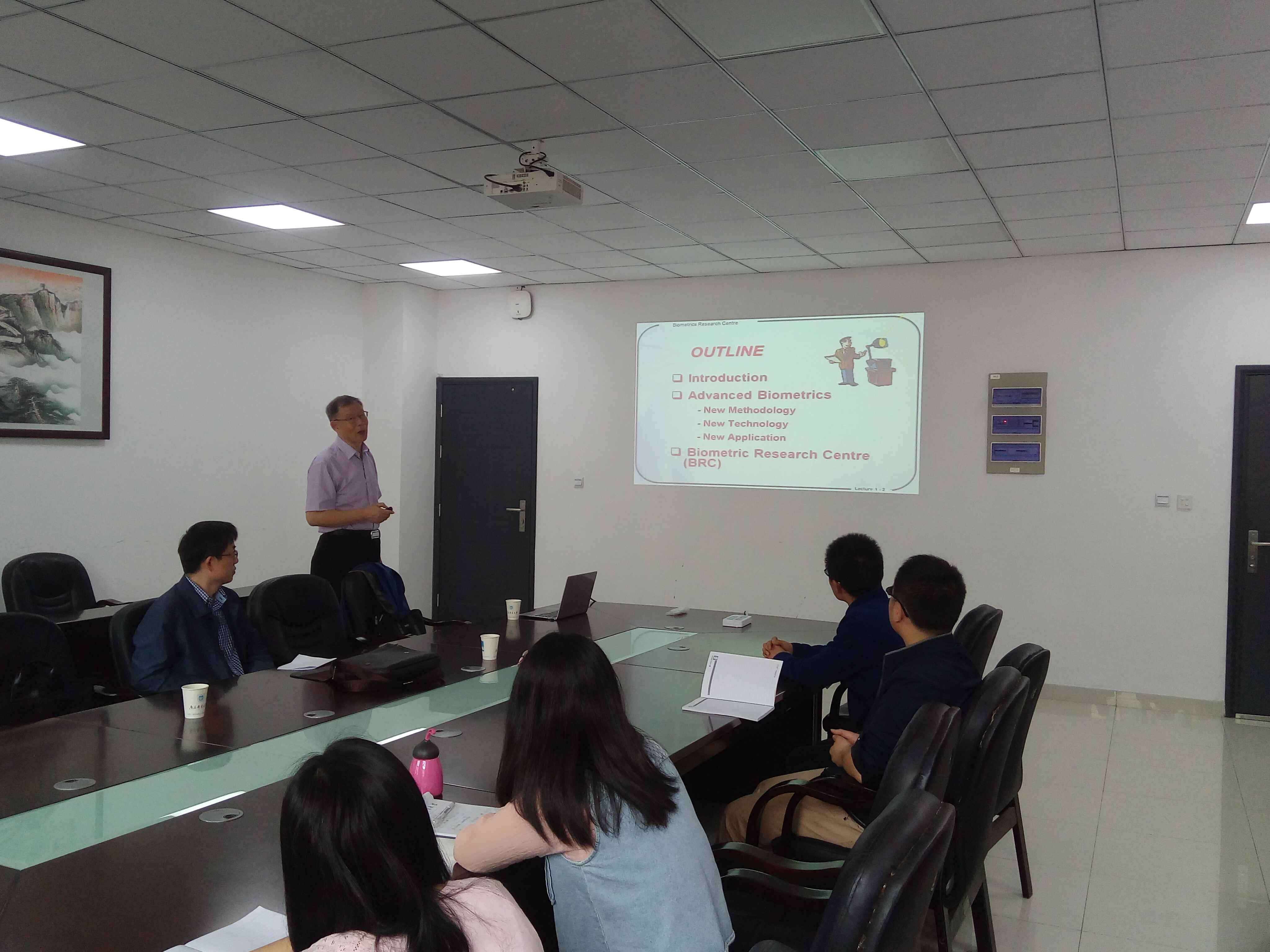 5月5日,应JOJO漫画 荆晓远教授邀请,模式识别领域国际著名专家、香港理工大学张大鹏教授在自动化学科楼会议室做了题为“Advanced Biometrics”的学术报告。JOJO漫画 副院长荆晓远教授主持学术报告,相关研究领域的老师和研究生聆听了报告。