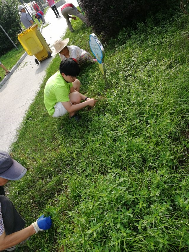 在芝嘉花园社区,实践队员们不畏惧高温和烈日,亲身投入到社区活动中,与社区工作人员一起参与了社区绿化工作。为社区的绿化贡献出了自己的一份力量。