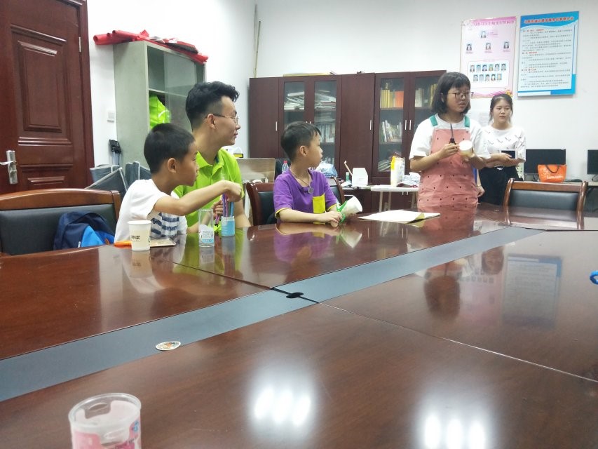 在石坝社区,实践队员帮助老师一起教社区小朋友们做手工,在队员们的帮助和协作下小朋友们纷纷完成了自己的作品。小朋友们看着自己作品时流露出的自豪神情和那无邪的笑声就是对社区实践工作最好的肯定。