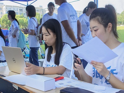 正在准备迎新的志愿者们