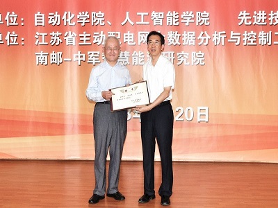 仙林校区图书馆四楼报告厅举行,副校长王国平教授主持仪式。校长杨震教授为薛院士颁发了聘书,并佩戴校徽。副校长蒋国平代表学校接受薛院士捐赠。薛院士在致辞中表示,他愿意为人工智能技术在南邮的发展做出努力,为南邮人工智能研究的深入奉献自己的力量。