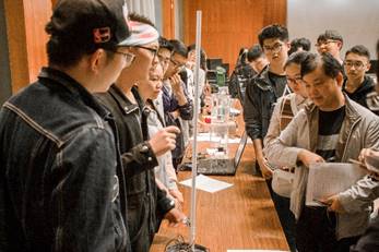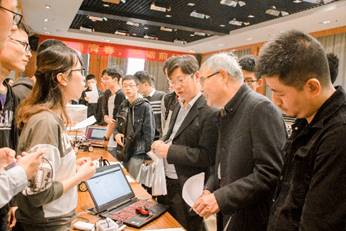 下午3:00,参赛选手在科协工作人员的指引下有序进入比赛会场,进入参赛展台,按照顺序放入自己的参赛作品。本次比赛有幸邀请到七位评委老师:JOJO漫画 的关工委欧阳知健老师、党委副书记杜月林老师、副院长陈小惠老师、副院长张腾飞老师、分团委副书记赵勃老师、电气工程系陈轶涵老师以及2017级辅导员仲鹏达老师。首先,杜书记对本次大会进行致辞,杜书记从“天时地利人和”的角度发表讲话,谈到了我们学院对科技制作的大力支持;然后张院长发表讲话,张院长针对往年的参赛情况以及参赛作品对我们今后对比赛的方向以及作品的选择提出了建议。下午3:30,主持人宣布比赛开始,两队评委老师分别到各个展台对各个参赛队伍的作品进行评审。评审过程中,参赛选手分别向评委老师讲解自己的作品功能以及创新点,评委老师分别针对不同的作品从技术和实际生产应用方面向选手提出问题,并给出建议以及作品的发展方向。