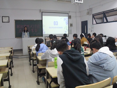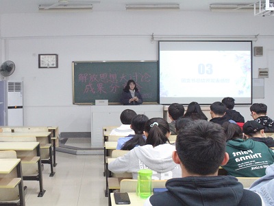 各班团支书分别发表了在解放思想大讨论系列活动中的收获和感想。感想大致分为两项,一方面,他们认为每个人可以通过将理论知识和实践结合,修改和完善自己的思想,使思想紧跟时代的步伐,从而形成自己的思想,并让自己的思想得以解放。另一方面,他们表示应深刻明确自己的定位,明白自己该做什么,要怎么做。首先作为学生,应该勤学苦练,为自身思想之花的绽放做好准备,其次作为班集体乃至社会中的一员,就应该要服务于人,为形成融洽的集体气氛和建造和谐社会贡献一份力量。