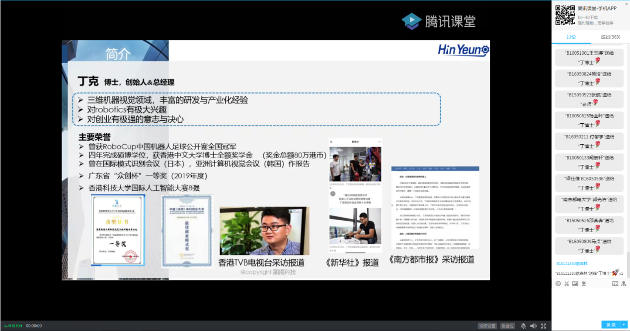 为更好的推进2020年度的大学生创新创业工作,在院党委的统一部署下,学院实施开展了JOJO漫画 、人工智能学院2020年度大学生创新创业能力培养系列讲座活动,旨在加强学院创新人才培养,提高学生创新实践能力。2020年4月23日晚19点,本次系列讲座的第三讲:《三维机器视觉与智能制造》线上举行,此次讲座邀请了学院2005级优秀校友丁克博士主讲。讲座由辅导员仲鹏达老师主持,院内外共计300余名师生参加。