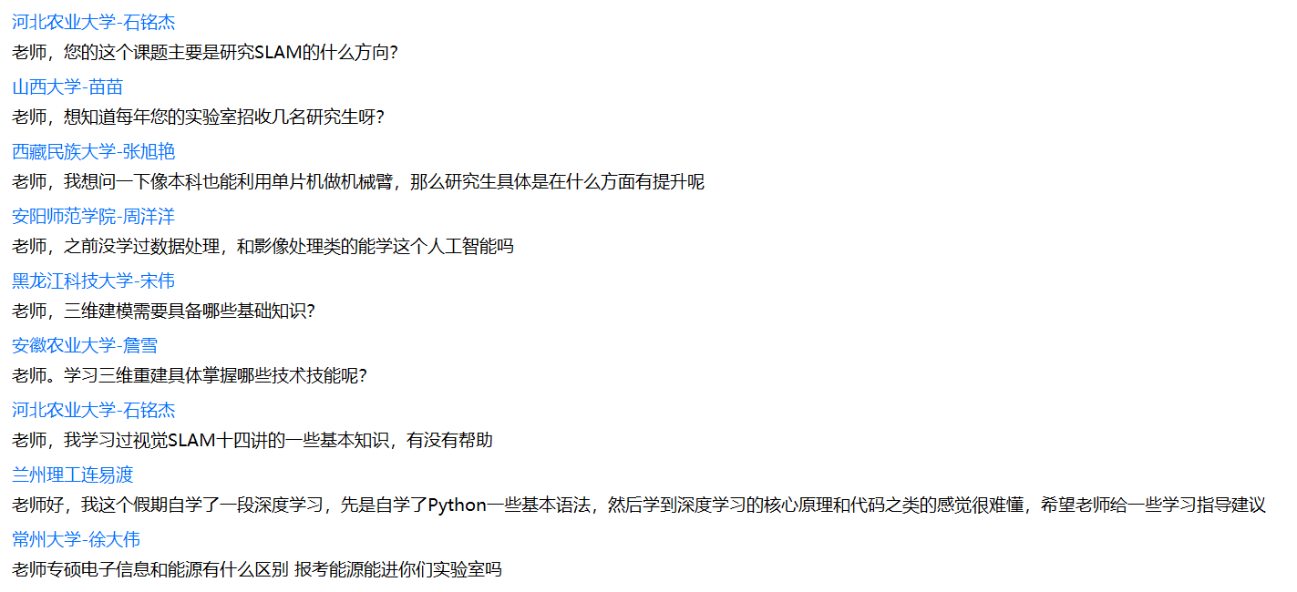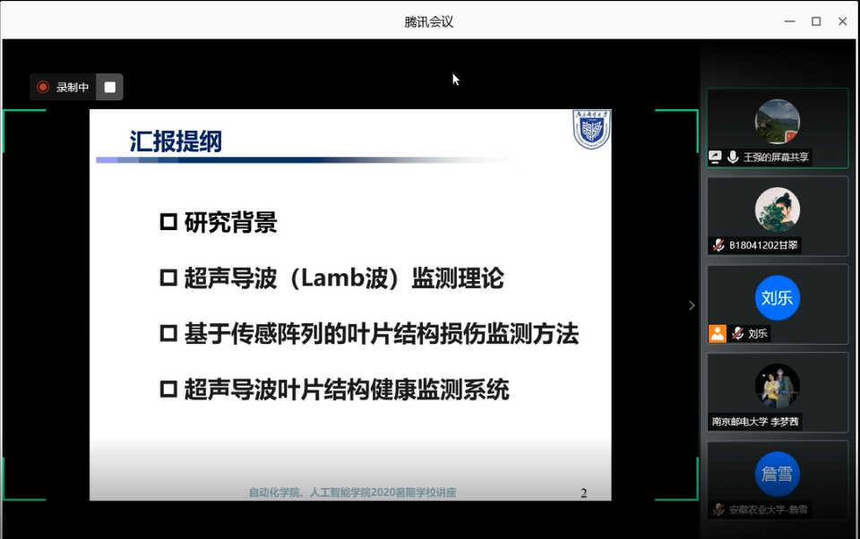 讲座结束后,张院长鼓励各位同学要勇于展现自己,希望同学们能够畅所欲言,在张院长的鼓励下,不少同学打开摄像头介绍自己,并且将自己的想法和疑惑一一道来,张院长秉持着“知无不言,言无不尽”的态度耐心地回答每位同学的困惑,气氛也在不断的交流中变得活跃起来。最后,张院长希望同学们能充分利用在夏令营中学到的知识,将两天的夏令营活动当作一个好的开始,继续向着目标前进,期待明年与同学们在南邮,在JOJO漫画 、人工智能学院再次相聚。