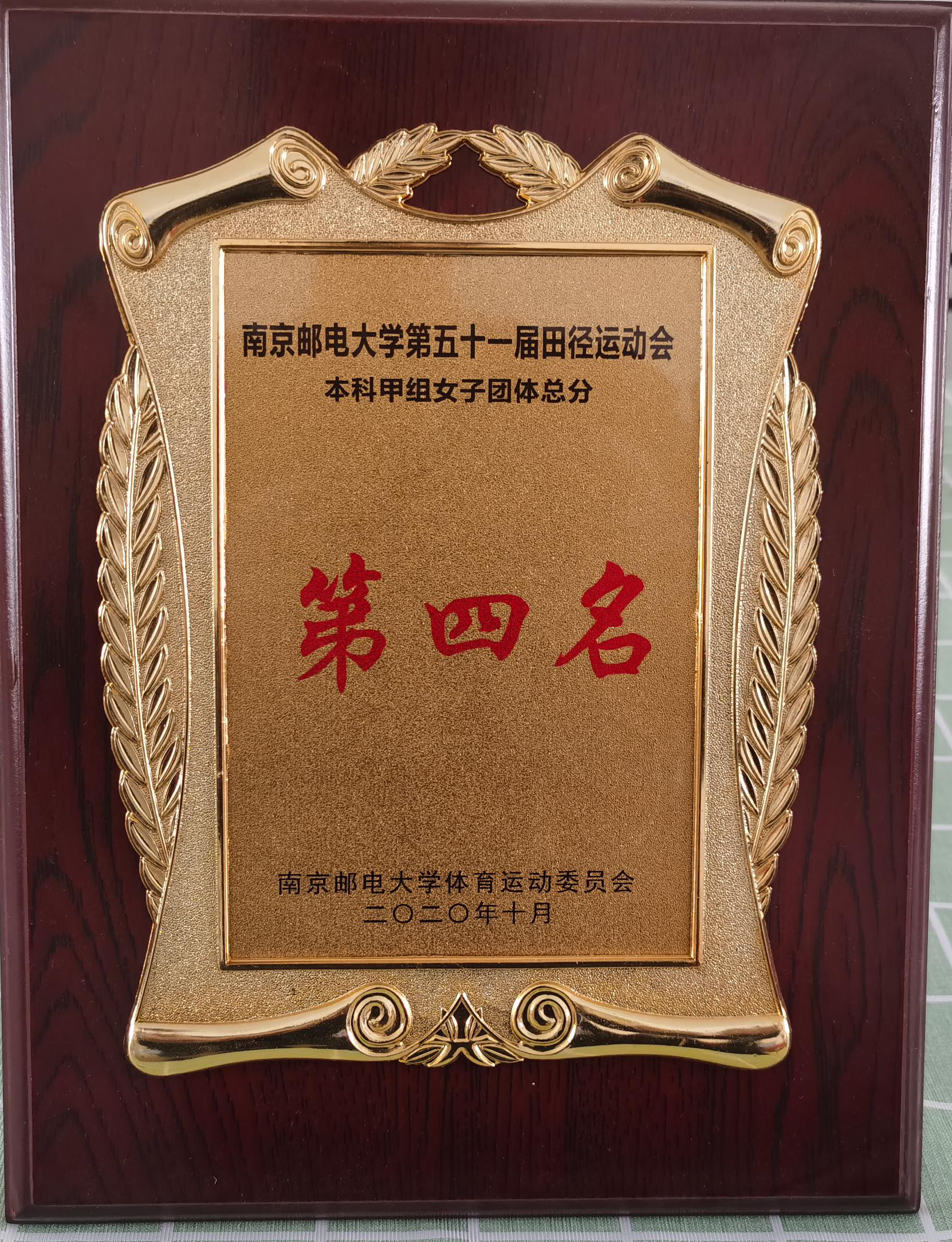 JOJO漫画 本科甲组女子团体在2020年JOJO漫画 第五十一届田径运动会中荣获第四名