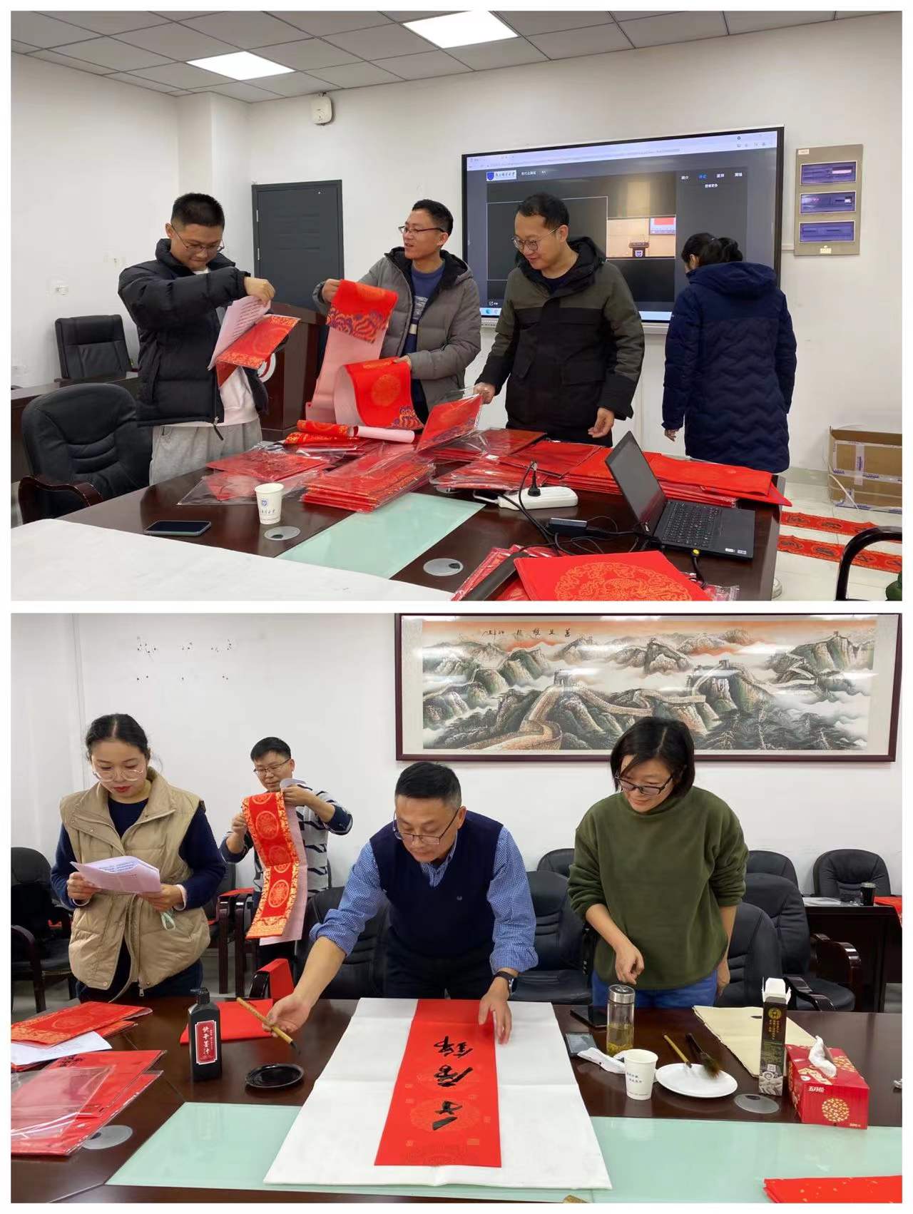 、人工智能学院在学科楼321会议室开展“写春联 送祝福”活动,将新春的祝福送至每位教职工身边。