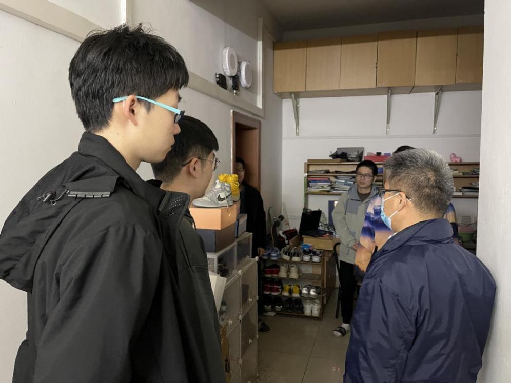 近日,为进一步落实学校疫情防控要求,了解学生线上学习效果,关心学生生活情况,学院党委书记张翼、院长岳东、党委副书记孙委委、副院长王强、徐丰羽、丁磊深入学生宿舍、研究生教研室,开展关心慰问、谈心谈话工作,全体辅导员陪同走访。