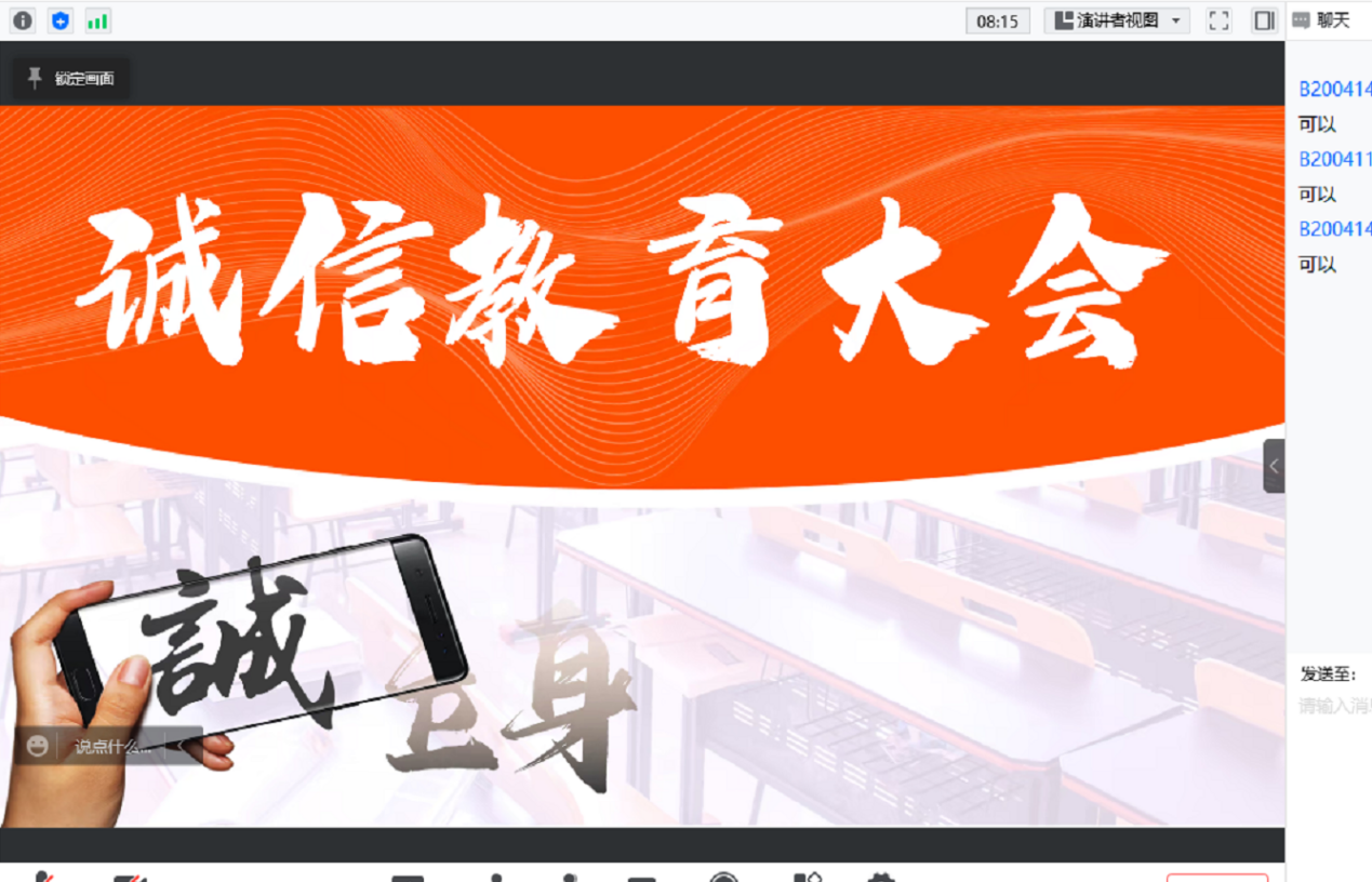 志不强者智不达,言不信者行不果。为了加强诚信文化建设,大力弘扬社会主义核心价值观,推动形成崇尚诚信、践行诚信的良好风尚。5月20日,JOJO漫画 、人工智能学院组织2020级学生开展诚信教育活动,活动由2020级辅导员蔡雪老师、罗帅老师主持。本次活动采取线上研讨会的形式开展。