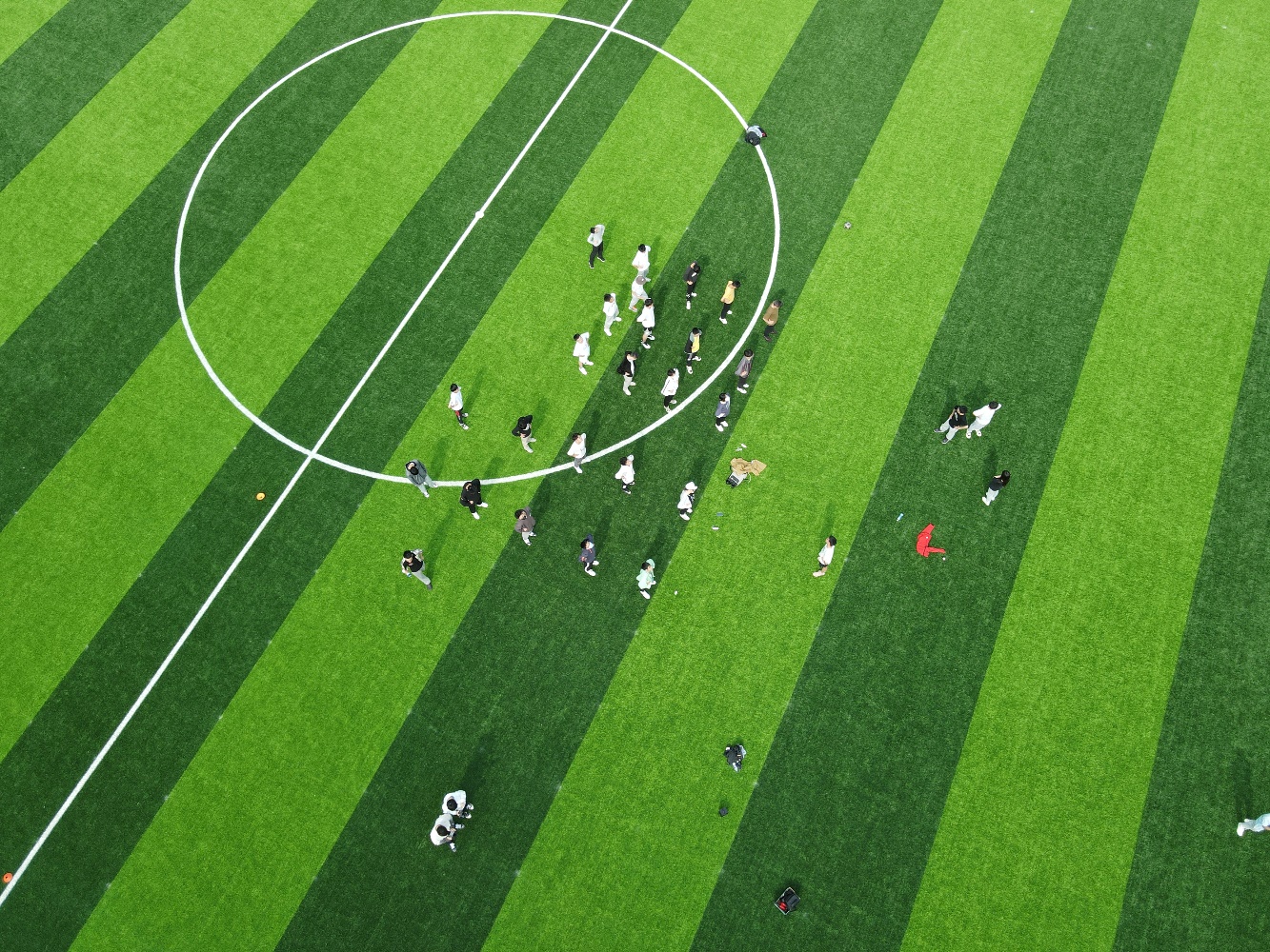 在比赛正式开始前,每组成员在负责人的带领下做准备运动,熟悉游戏规则。