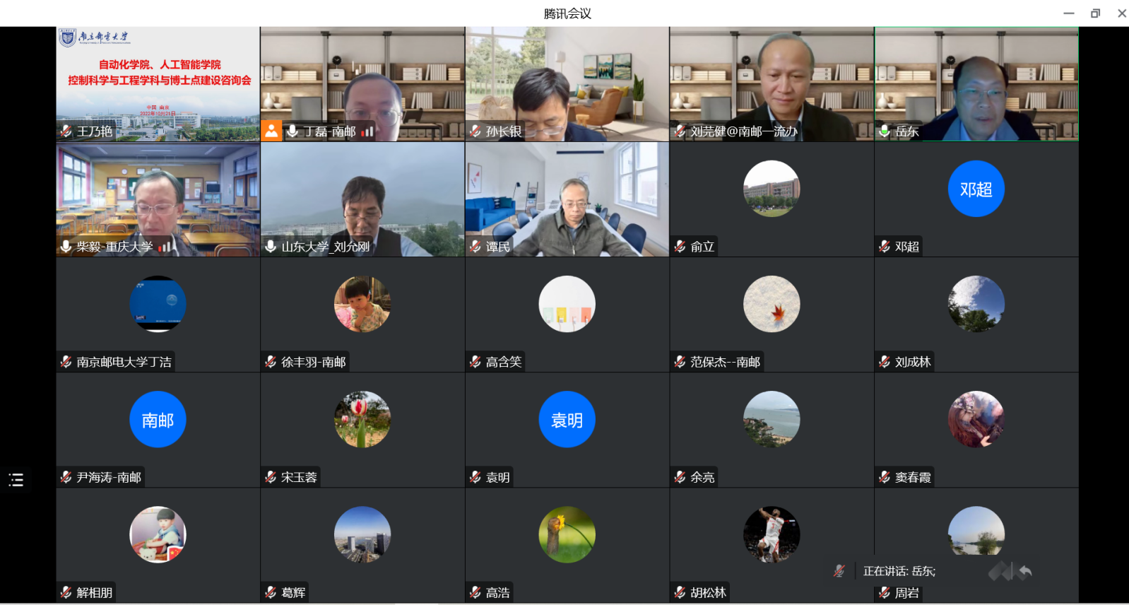 2022年10月21日上午,JOJO漫画 、人工智能学院召开控制科学与工程学科与博士点建设线上咨询会。出席本次咨询会的专家有:中国科学院自动化研究所谭民研究员、浙江工业大学俞立教授、安徽大学/东南大学孙长银教授、中国科学院自动化研究所刘成林研究员、重庆大学柴毅教授、山东大学刘允刚教授。JOJO漫画 一流学科和高水平大学建设办公室主任刘芫健教授、JOJO漫画 、人工智能学院院长岳东教授、学院领导以及各系、中心主任、学科骨干教师代表参加了咨询会。