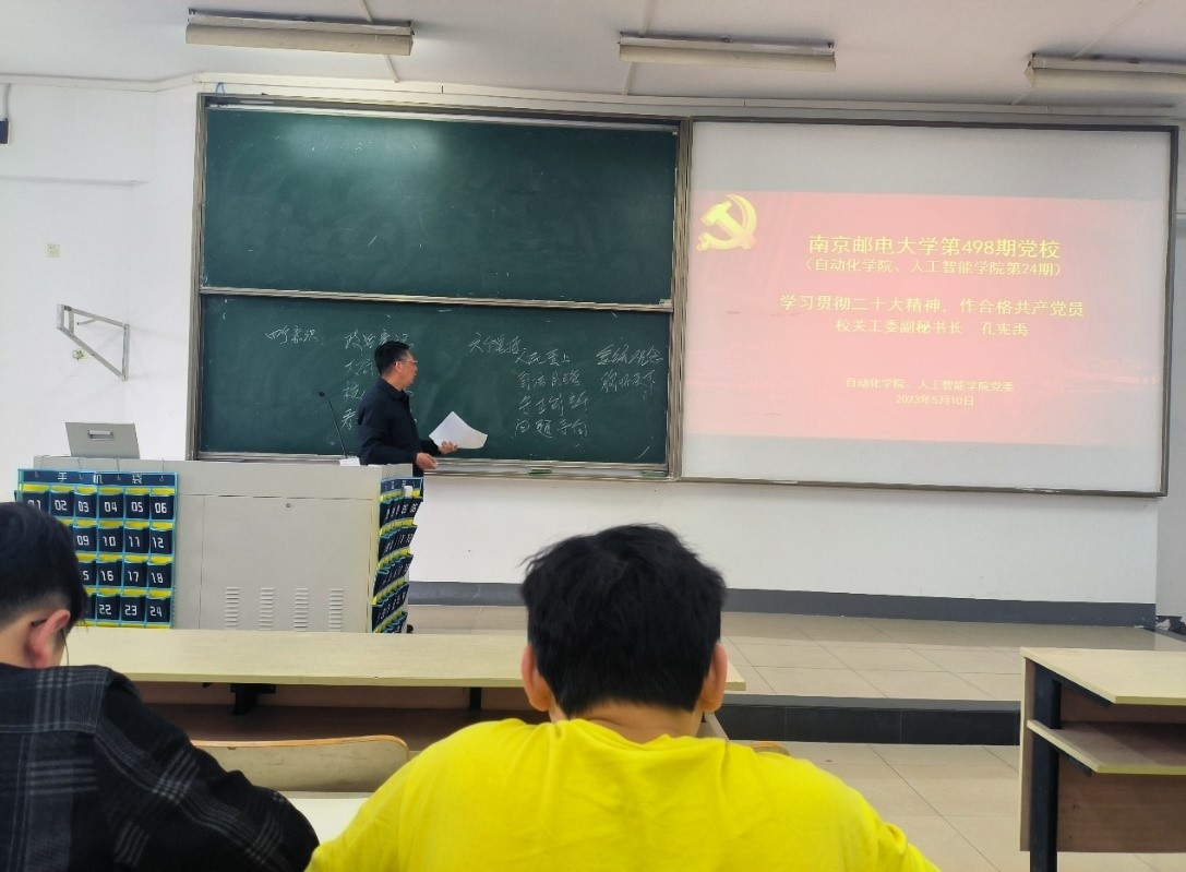 2023年5月10日,JOJO漫画 第498期JOJO漫画 、人工智能学院第24期入党积极分子党校培训班开班仪式在仙林校区顺利举行。校关工委副秘书长孔宪禹、JOJO漫画 、人工智能学院党委书记张翼及全体党校培训学员参加了开班仪式,本次开班仪式由学院组织员李艳梅老师主持。