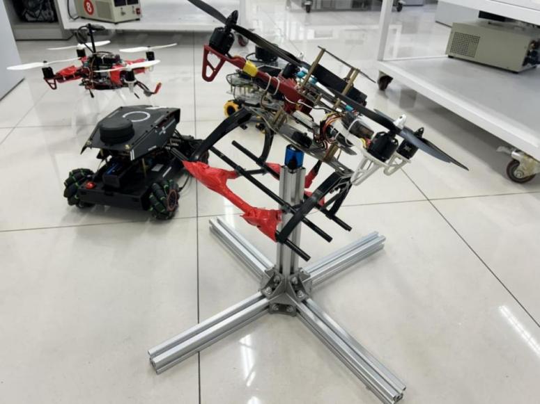 周映江老师带领调研组参观了自动化控制原理实验室,介绍了多旋翼飞行控制综合实验平台、学生设计的无人机和智能车,其间重点讲解了基于Pixhawk的四旋翼无人机仿真转台,是如何通过Simulink进行控制理论的实物仿真,大大降低实验成本和物料损耗,为控制理论落地提供坚实基础的原理。
