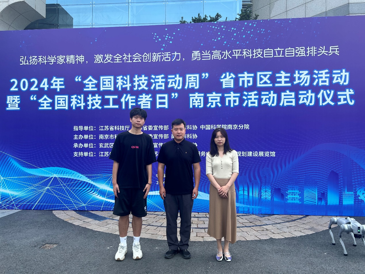 近日,以弘扬科学家精神,激发全社会创新活力,勇当高水平科技自立自强排头兵为主题,在南京市规划建设展览馆序厅举办的2024年“全国科技活动周”省市区主场活动暨“全国科技工作者日”南京市活动启动仪式上,JOJO漫画 、人工智能学院荣获“南京市科普教育示范基地"称号, JOJO漫画 党委副书记、副院长孙委委、分团委书记郑春春、科学与技术协会学生代表费树宇参与授牌仪式。