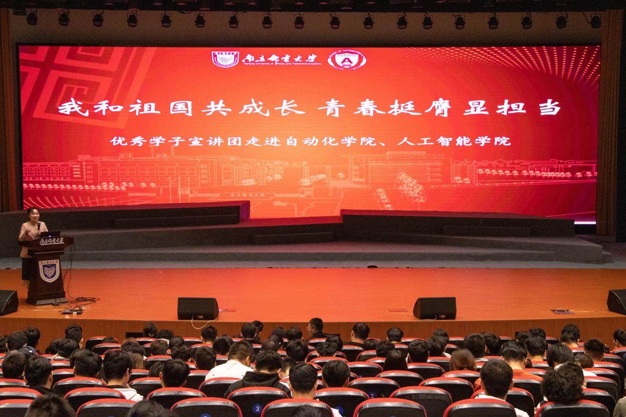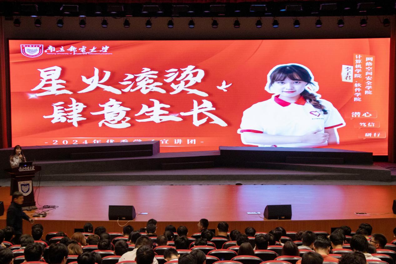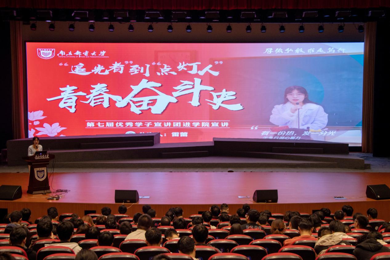 为持续推进“学在南邮”优良学风建设工作,确保学风建设工作提质增效。充分发挥各类先进典型在学生成长中的示范引领作用,打造“用身边人讲身边事,用身边事影响身边人”的朋辈教育理念,传递“向榜样学习、与榜样同行”的精神内核。10月31日晚,校第七届优秀学子宣讲团走进JOJO漫画 、人工智能学院,500余名师生于青春剧场内共上一堂信仰公开课、梦想公开课、思政公开课。学院党委副书记、副院长孙委委,辅导员桑学峰、齐沁儿出席。活动由齐沁儿老师主持。