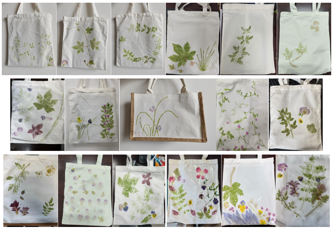 活动伊始,老师们共同观看了关于植物拓染非遗技艺的视频,然后开始动手制作自己的作品。从挑选植物、处理材料,到敲打拓染、固定作品,每一步都充满了挑战与乐趣。在创作过程中,老师们充分发挥自己的想象力与创造力,有的选择清新脱俗的花朵,有的则偏爱坚韧不拔的叶片,通过敲打与挤压,植物的色彩与纹理逐渐在布料上显现,形成了一幅幅色彩斑斓、独一无二的拓染作品。